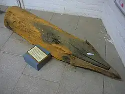 Eichenholzpfahl mit Pfahlschuh mit 2 Laschen mit je 2 Befestigungslöchern (Deutschland, Mittelalter)