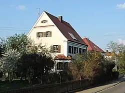 Das Pfarrhaus im Stil des Neubarocks wurde nach Plänen des Münchener Architekten August Hock errichtet. Der zweigeschossige Traufseitbau mit Satteldach besitzt einen polygonalen Eckerker, ein abgedecktes Giebelgesims und ein Relief der Muttergottes an der Giebelseite.