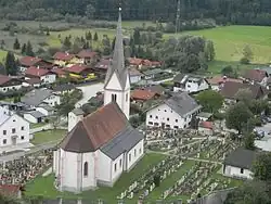 Eine Kirche wurde 745 urkundlich genannt. Der spätgotische Kirchenbau wurde 1706 um ein nördliches Seitenschiff erweitert. 1856 wurde die Kirche zur Pfarrkirche erhoben. Nach einem Turm- und Dachstuhlbrand 1890 wurde die Einrichtung zur Gänze erneuert. 1977 erfolgte eine Außen- und 1972 eine Innenrestaurierung.