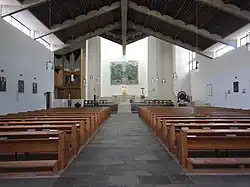Die Kirche beherbergt einen Kreuzweg und ein Mosaik des Künstlers Richard Kurt Fischer.