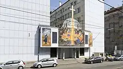 Da die Notkirche zu klein war, und das Grundstück für ein Pfarrzentrum keinen Platz bot, begann bereits 1952 Architekt Ladislaus Hruska mit der Planung einer neuen Kirche in der Hochstettergasse, wobei acht Entwürfe entstanden, da einerseits die Forderung bestand, die Kirche in die Mitte einer Wohnhausanlage zwischen zwei fünfstöckigen Trakten zu situieren und gleichzeitig mit geeigneter Lichtführung Tageslicht für den mittig eingebundenen Kirchenraum zu gewinnen.[2] 1967 begannen schließlich die Bauarbeiten für das heutige Kirchengebäude.