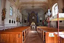 Der Hochaltar mit einem Tabernakel zeigt das Bild hl. Jakobus der Ältere aus der zweiten Hälfte des 18. Jahrhunderts.