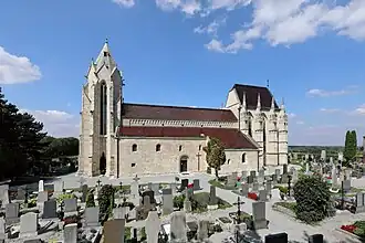 Die Kirche steht im Nordosten des Ortes, erhöht auf einer Terrasse, die zur Donau steil abfällt. Sie ist von einem Friedhof mit Umfassungsmauer aus Bruchsteinen umgeben. Südöstlich der Kirche, innerhalb des Friedhofes, befindet sich ein romanischer Karner.