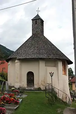 Der Karner steht nordöstlich neben der Kirche und ist dem heiligen Michael geweiht. Der zweigeschoßige romanische Bau mit Halbkreisapsis im Osten besitzt strebepfeilerartige Wandverstärkungen. Im Untergeschoß befindet sich das Beinhaus, im Obergeschoß die mit einem sechsteiligen Bandrippengewölbe ausgestattete Kapelle. Die Fresken zeigen starken Südtiroler Einfluss und sind mit 1428 bezeichnet. In der östlichen Gewölbekappe ist die Verkündigungsszene, in der westlichen Christus als Weltenrichter gemalt. In den restlichen Gewölbekappen sind die zwölf Aposteln ein Dreiergruppen dargestellt, darüber Engel mit den Leidenswerkzeugen. Den Abschluss bildet ein Schlussstein mit einem Lamm Gottes. An der Südwand ist unter dem Apostel Matthias der Erzengel Michael zu sehen. Das Wandbild an der Außenmauer zeigt Christus am Ölberg.