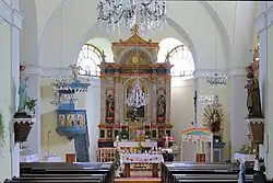 Im Kircheninneren ist vor allem der Hochaltar von Bedeutung, der Anfang des 19. Jahrhunderts geschaffen wurde. Es handelt sich um einen klassizistischen Doppelsäulenaltar mit schlichtem Aufsatz. Am Hochaltar stehen als Seitenfiguren die beiden Apostel Petrus (rechts mit seinem Attribut, einem Schlüssel) und Paulus (links mit dem Schwert). Das Hochaltarbild zeigt den Patron der Kirche, den heiligen Koloman in einer Pilgertracht mit kurzem gegürteten Rock und Pilgerstab. Zu seinen Füßen eine umgedrehte Krone. Über ihm schweben Putten, von denen einer einen Märtyrerkranz herabreicht. Neben dem Heiligen wird ein Geistlicher dargestellt, der durch Mitra und Bischofsstab als Bischof gekennzeichnet ist.