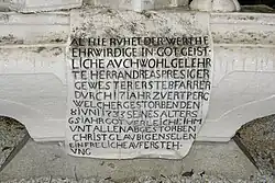 Der zur Kirche gehörende Pfarrhof – ein zweigeschoßiger Bau mit Walmdach und schlichter Fassade mit Gesimsband und Ecklisenen – wurde im 18. Jahrhundert errichtet. An dessen Südseite wurde ein Speicher angebaut. Nordöstlich des Pfarrhofs, auf der gegenüberliegenden Straßenseite, befindet sich ein Grabdenkmal zu Ehren des am 8. Juni 1733 gestorbenen Pfarrers Andreas Presiger.