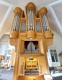 Die Orgel baute Rieger Orgelbau 1980 unter Verwendung des Vorgängerinstruments.[1]