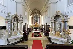 Zwei weitere Seitenaltäre bilden die Begrenzung des Zentralraums der Kirche mit den Kirchenbänken hin zum Chor: