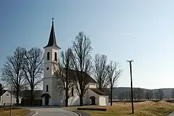 Im Jahr 1788 wurde sie daher abgerissen und, unter Verwendung des Materials der alten Kirche, direkt in der Ortschaft neu errichtet.[8][9] Bei einem Großbrand 1843, der nahezu das ganze Dorf vernichtete, blieben Kirche und Pfarrhof unbeschädigt.[10] 1878 wurde die Kirche vergrößert,[11] 1869 erhielt sie eine neue Orgel, die wiederum 1926 mit einem neuen Orgelwerk ausgestattet wurde.[12]