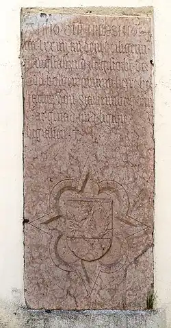 - ein Epitaph der Elisabeth von Starhemberg († 1418), geborene Hohenberg zu Wolkersdorf und Raspach, 1397 vermählt mit Gundacker VII. von Starhemberg