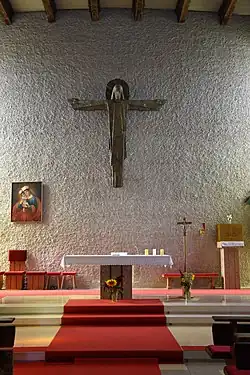 Den Hochaltar mit einem Bronzekruzifix schuf Josef Magnus. Der ehemalige Hochaltar ist aus der ersten Hälfte des 19. Jahrhunderts und trägt einen Tabernakel mit einer Christusfigur und zwei adorierende Engel.