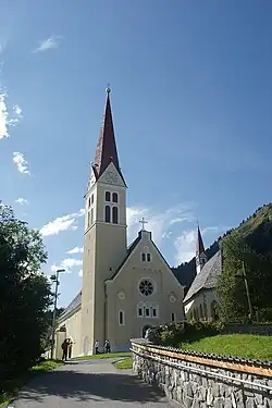 Die ursprüngliche Filialkapelle der Pfarrkirche hl. Nikolaus in Elbigenalp wurde 1401 zur Pfarrkirche erhoben und dann vergrößert. Der 1709 durch Baumeister Christian Strobl errichtete Neubau wurde 1732 geweiht. Der Turm mit Spitzhelm wurde 1819 erhöht. Der 1860 bis 1861 errichtete Langhausneubau und der 1863 durch Baumeister Josef Anton Kuen nach einem Plan des Architekten Josef Vonstadl geschaffene Chorneubau wurde 1864 geweiht. Die Fassade wurde erst 1868 fertiggestellt.