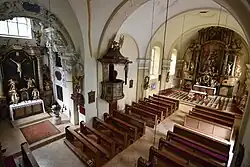 Das reizvolle Orgelprospekt von um 1720/1730 hat Flügeltüren, innen bemalt mit David und Cäcilia, außen bemalt mit Blumen und stammt von Valentin Hochleitner. Eine Glocke nennt Medardus Reig 1690.