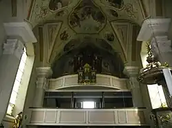 Die Brüstungsorgel mit einem Unterwerk baute Alois Hörbiger um 1835. Eine Glocke nennt Josef Graßmayr 1753.