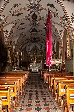 Ein romanischer Vorgängerbau wurde Ende des 15. Jahrhunderts durch einen spätgotischen Kirchenbau ersetzt. Der romanische Turm blieb erhalten. Nach einem barocken Umbau wurde die Kirche urkundlich 1761 geweiht. 1886 und 1889/1901 wurde die Kirche regotisiert. 1891 wurde die Kirche zur Pfarrkirche erhoben.