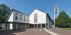 1952 wurde eine Notkirche eingerichtet. 1973 wurde nach den Plänen des Architekten Anton Zemann ein Pfarrzentrum erbaut. 1989 bis 1993 erfolgte ein Umbau nach den Plänen der Architekten Felix Orsini-Rosenberg und Franz Freytag.