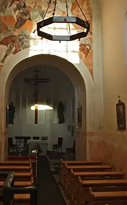 Das romanische Langhaus war davor wohl ein Festes Haus, im 12. Jahrhundert entstand mit dem Anbau des gotischen Chores mit einem polygonalen Schluss eine Kirche. Die Kirche trägt einen kleinen Dachreiter.