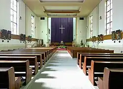 Die Seitenkapelle mit einer Judas-Thaddäus-Statue von Hans Andre aus dem Jahr 1932 ist mit Votivtafeln überhäuft, so dass kaum mehr ein Flecken roher Wand zu sehen ist.