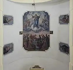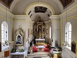 Der Hochaltar um 1845 trägt die Figuren hl. Maria mit Kind (Maria Schnee), Stephanus und Laurentius, im Auszug Christus um 1840/1845.