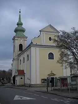 Die ursprünglich gotische Kirche wurde bei der Zweiten Wiener Türkenbelagerung im Jahre 1683 zerstört. Die jetzige Kirche wurde 1696 unter Propst Christoph II. vom Stift Klosterneuburg errichtet. Nach mehreren Renovierungen in den folgenden Jahrhunderten erhielt sie 1952 ihre heutige Gestaltung.[5]