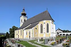 Von der spätgotischen Kirche ist der Chor und der Turmunterbau erhalten. 1706 wurde mit dem Baumeister Carlo Antonio Carlone die Kirche wesentlich umgebaut und erweitert.