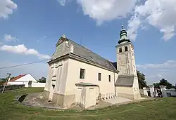Der romanische Langhausbau hat einen gotischen Turm und Chorbau aus dem 15. Jahrhundert. Die Nordkapelle entstand im Ende des 17. Jahrhunderts. Im Jahr 1782 wurde die Kirche umgebaut und erweitert, 1936 und 1958 restauriert.
