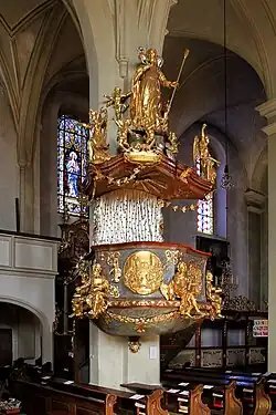 Die spätbarocke Orgel mit einem Rückpositiv mit 21 Registern schuf Ignaz Gatto der Jüngere (1792). Nach einem Umbau der Orgel (1884) wurde die Orgel mit Gerhard Hradetzky (1980) wiederhergestellt.[1]