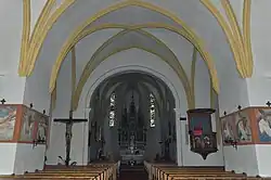 Die im Kern romanische Saalkirche und umgebaute spätgotische Staffelkirche hat einen eingezogenen Chor aus dem Ende des 13. Jahrhunderts und im nördlichen Chorwinkel einen spätgotischen Turm.