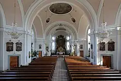 1889 wurde in der Kirche ein neuer Hochaltar aufgestellt; dieser wurde später verkauft. Der heutige Altar im Empirestil stammt aus dem Jahr 1915. Das Tabernakel gehörte ursprünglich zur Ausstattung der Pfarrkirche Burgkirchen bei Wels. Die Seitenaltäre zeigen den heiligen Josef und die heilige Maria; sie wurden zwischen 1911 und 1913 von Rabeder gestaltet.