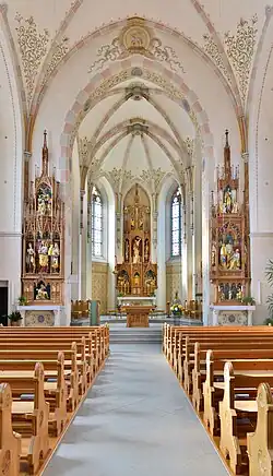 Kircheninneres mit Blick zum Altar.