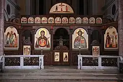 Eine feste Ikonostase wurde im März 2018 errichtet, davor gab es eine kleinere vorläufige Ikonostase. Die Ikonen stammen vom rumänischen Ikonenmaler Toma Gabriel Chituc.