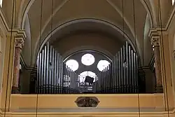 Die Orgel wurde vom Wiener Orgelbauer Johann M. Kauffmann im Jahr 1913 errichtet, nachdem die alte Orgel in die Pfarr- und Wallfahrtskirche Maria Gugging übertragen worden war.[12] Die Orgel verfügt über zwei Manuale und Pedal sowie über ein Freipfeifenprospekt.