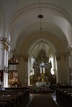 Die Kirche besitzt bemerkenswerte Altäre aus der Zeit um 1785. Die Glocke wurde 1518 gegossen.