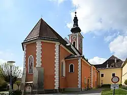 Urkundlich wurde 1147 eine Kirche genannt. Die Eigenkirche der Grafen von Plain war mit der Burg verbunden. Nach dem Ungarneinfall 1481 wurde die Kirche als Wehrkirche mit einer Ummauerung wieder aufgebaut. Von 1750 bis 1755 erfolgte ein Umbau. Unter dem Pfarrer Graf Des Enffans d’Avernas (1894–1917) wurde die Kirche fast ganz abgerissen und neu erbaut und 1906 geweiht.
