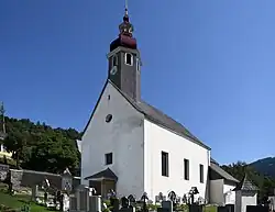 Der Kirchenbau ist von einem Friedhof mit vier gemauerten barocken Initienkapellen umgeben.