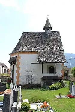 Der Karner südlich der Kirche ist ein kleiner, spätgotischer Bau von 1522 mit Dreiachtelschluss, Dachreiter und Steinplattldach. Im Inneren ruht ein zweijochiges Netzrippengewölbe auf Konsolen. Das Bild des heiligen Martin in einem reich geschnitzten Rahmen entstand um 1720. Im Kellergeschoß ist das Beinhaus untergebracht.