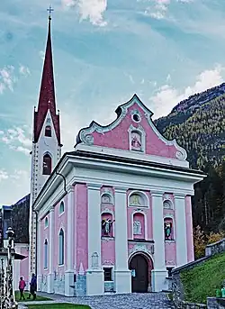 Nach dem Neubau zwischen 750 und 1050 wurde sie ab 1500 gotisch vergrößert, jedoch 1770 unter Tomas Mayr im Stil des Barock großzügig umgebaut. Das Spitzbogenportal blieb dabei jedoch erhalten. Der Turm wurde ab 1660 errichtet, die Fertigstellung zog sich jedoch etwa 30 Jahre hin. Neben der Funktion als Pfarrkirche dient sie als Wallfahrtskirche, der Grund dafür ist ein Madonnen-Gnadenbild aus dem 17. Jahrhundert.