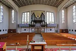 Die einheitliche Einrichtung entwarf Robert Herfert in Bewahrung von einzelnen Objekten aus der ehemaligen Pfarrkirche.