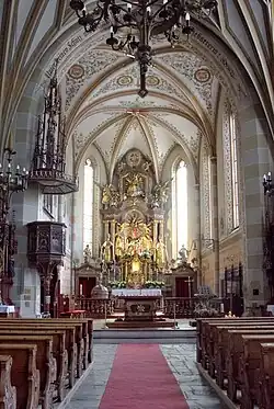 Die Orgel bauten Johann Christoph und Johann Ignaz Egedacher 1706 mit einem Rundbild hl. Cäcilia. Das Orgelwerk wurde mehrfach verändert, zuletzt 1963 von Dreher und Reinisch. Es gibt zwei Glocken von Gabriel Kopp 1541. Eine Glocke nennt Gregor Löffler mit Elias und Hans Christof 1563.