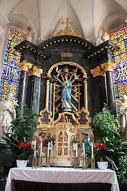 Der Hauptaltar, die Freskenmalerei sowie die Kreuzwegtafeln sind mit slowenischen Inschriften versehen und geben so Zeugnis der Sprach- und Kulturgeschichte dieses Zentralortes am östlichen Rand des Klagenfurter Feldes ab. Am Friedhof finden sich allerdings nur noch wenige Grabsteine mit slowenischen Inschriften.[4][5][6][7][8]