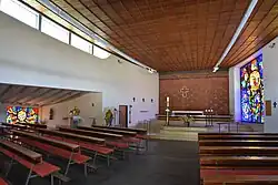Für den Bau der Kirche wurden für diese Zeit typische Materialien wie Sichtbeton, Glas, Eisen und Asphalt verwendet – es kamen aber auch Holz und Ziegel zum Einsatz.