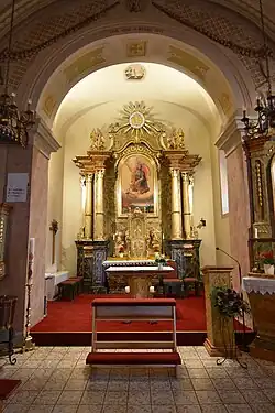 Der Altar stammt aus der zweiten Hälfte des 18. Jahrhunderts. Es ist ein Nischenaltar mit versetzten Säulen und Aufsatz. Das Altarbild zeigt den heiligen Florian.