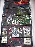 An der Empore sind verschiedene Ehewappen der Patronatsherren angebracht, davon mehrfach das Wappen der Familie von Feilitzsch.[7] In den Feldern der oberen Empore befinden sich zahlreiche Bilder mit Darstellungen von Szenen aus dem Alten und Neuen Testament, u. a.: Auferstehung Jesu, Letztes Abendmahl, Geißelung Jesu, Kreuzigung, Gefangennahme und Jesus auf dem Weg nach Golgatha.[8]