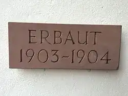 Gedenkstein des Baujahres am nördlichen Seiteneingang