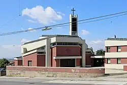 Die neue Pfarrkirche am Laaer Berg wurde nach Plänen des Architekten Herbert Schmid errichtet und 1986 geweiht.[1]
