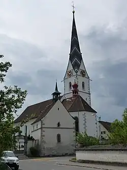 Früher war die gesamte Einwohnerschaft Mitglied der römisch-katholischen Kirche. Heute (Stand 2000) sieht die religiöse Zusammensetzung der Bevölkerung wie folgt aus: Es gibt 55,54 % römisch-katholische und 28,86 % evangelisch-reformierte Christen. Daneben findet man 6,56 % Konfessionslose und 4,81 % Muslime. Die Mehrheit der Muslime sind Albaner aus dem Kosovo und Mazedonien. Dazu kommen wenige Türken und Kurden.