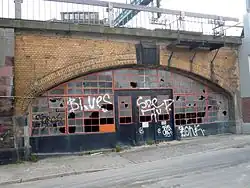 Von 2007 bis 2009 wurde die sanierungsbedürftige Pfeilerbahn abgerissen und durch ein neues, mit Stahlspundwänden eingefasstes Erdbauwerk mit einem Beton-Rahmenbauwerk für den kreuzenden Schienenverkehr ersetzt.[1] Über das bis zu 7,6 Meter hohe Bauwerk führen zwei Gleise.[3]