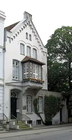 - Pferdemarkt 17, auf das frühe 14. Jahrhundert zurückgehendes neugotisches Haus von 1857