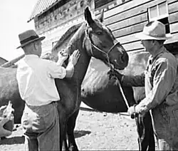 Die Ankaufsuntersuchung beim Pferdekauf und -verkauf von Bedeutung. Die Ankaufsuntersuchung findet im Regelfall vor dem Kauf statt, eventuell kann sie auch danach erfolgen, wenn eine Klausel im Kaufvertrag dies vorsieht. Dabei wird nach einem bestimmten Untersuchungsmuster vorgegangen und die Gesundheit beurteilt.[18]