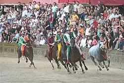 Eins der berühmtesten und umstrittensten Pferderennen, das nicht in einer speziellen Pferderennbahn abgehalten wird, ist der Palio di Siena. Er entstand aus einem Wettstreit der Bewohner konkurrierender Stadtteile von Siena. Der Palio hat heute nur noch eine traditionell-volksfestartige, touristische Bedeutung, er diente auch nie der pferdesportlichen Zuchtauslese. Anders als bei den meisten anderen Pferderennen kann ein reiterloses Pferd Sieger des Palio werden.